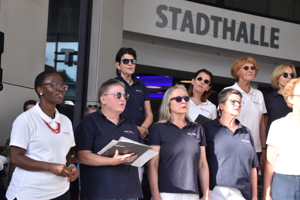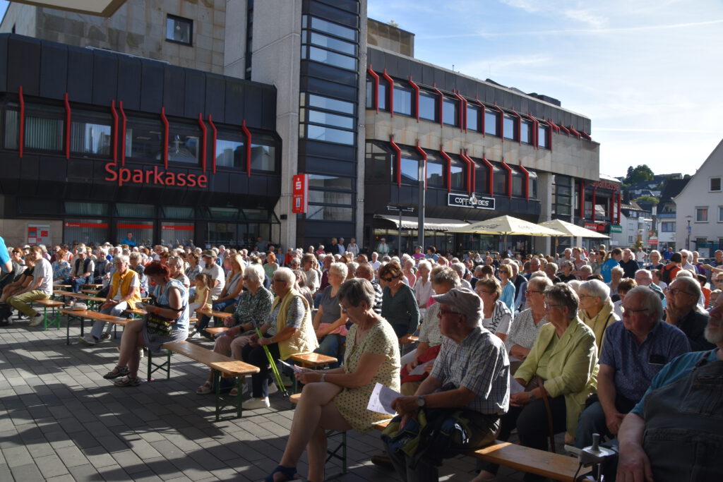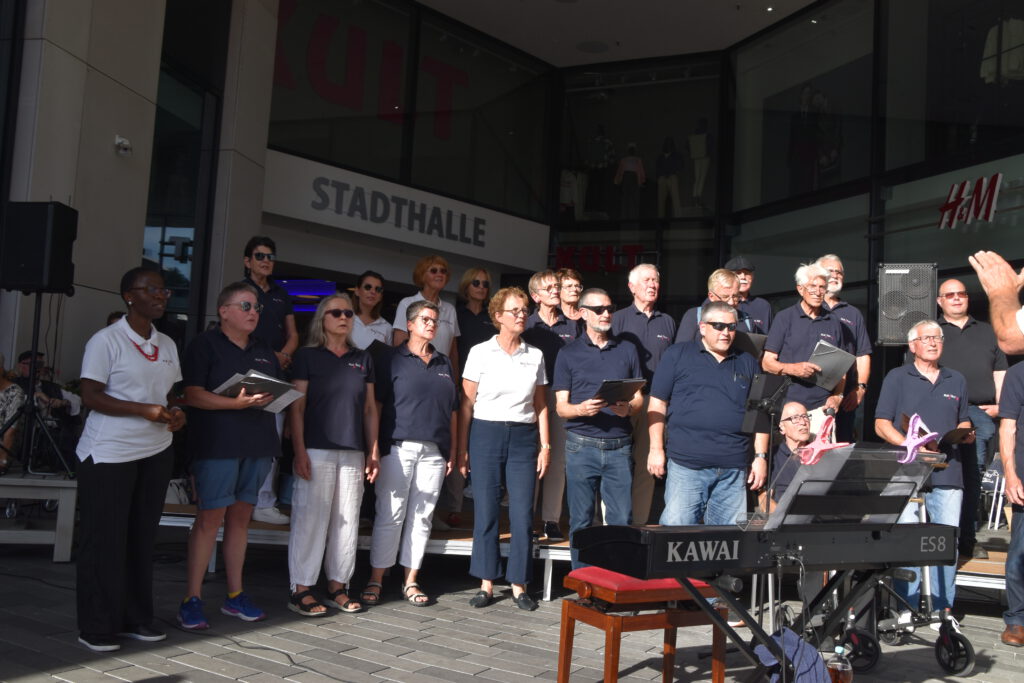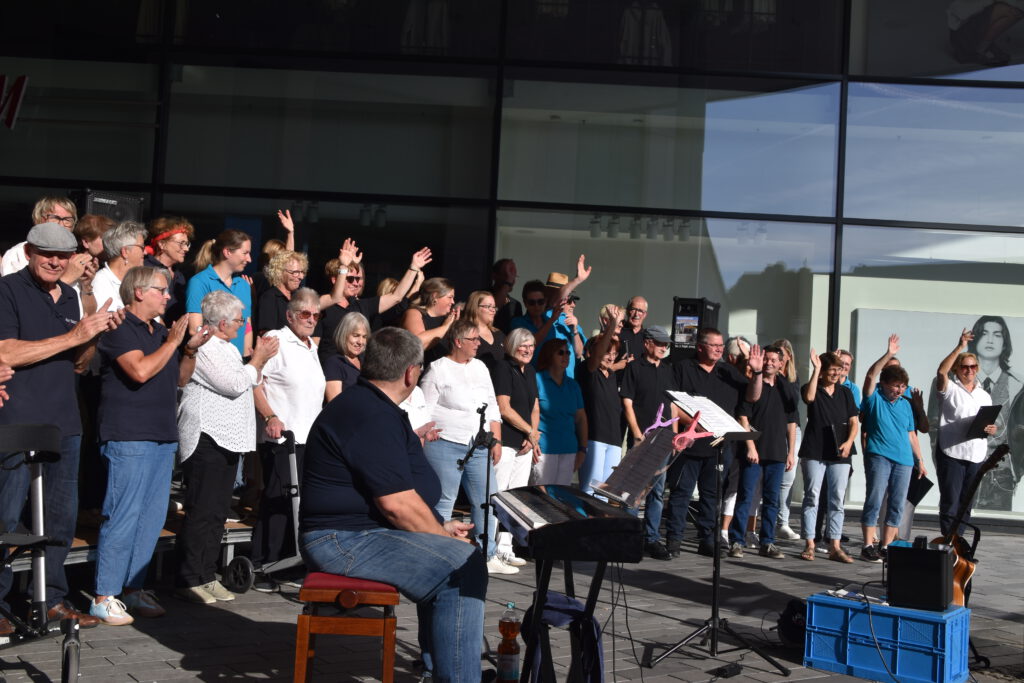 Im Sommer 24 besuchten wir 4 Seniorenwohnheime in Meschede; einige Chorstücke und mehrere Lieder zum Mitsingen brachten Abwechslung in den Alltag der Bewohner; hier ein Foto aus dem „Blickpunkt“.